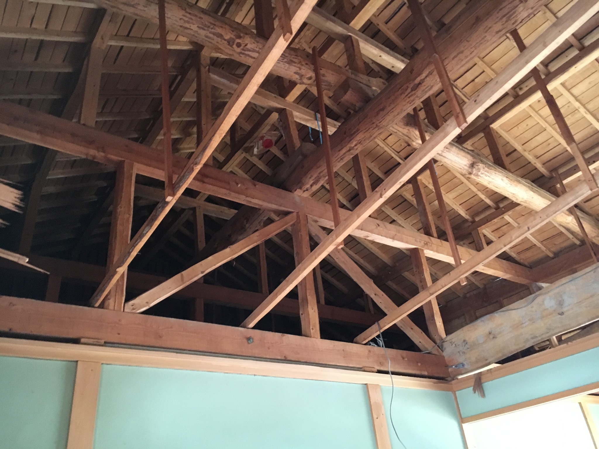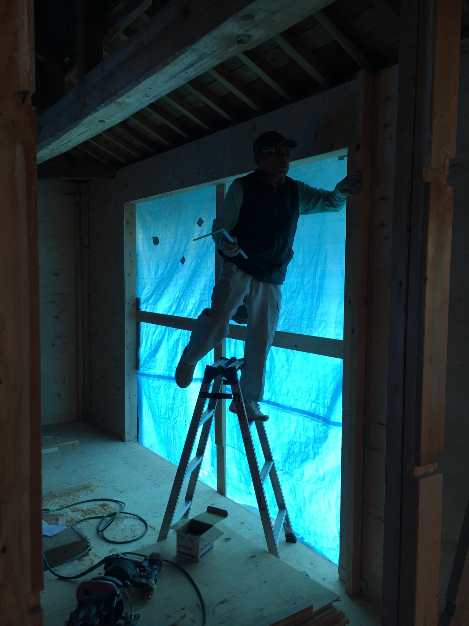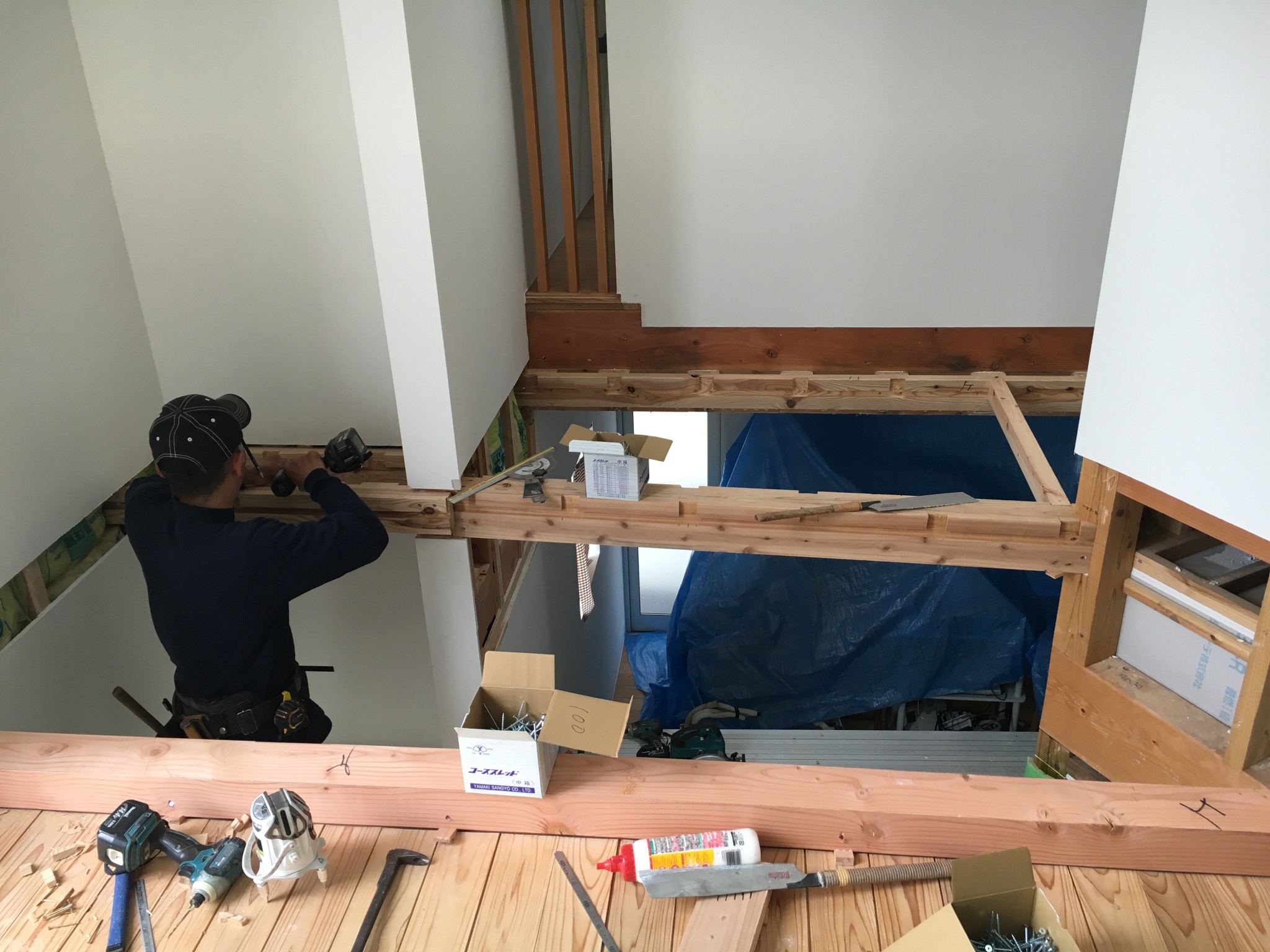 吹き抜けを部屋にする工事ですが大工工事まっただ中です。