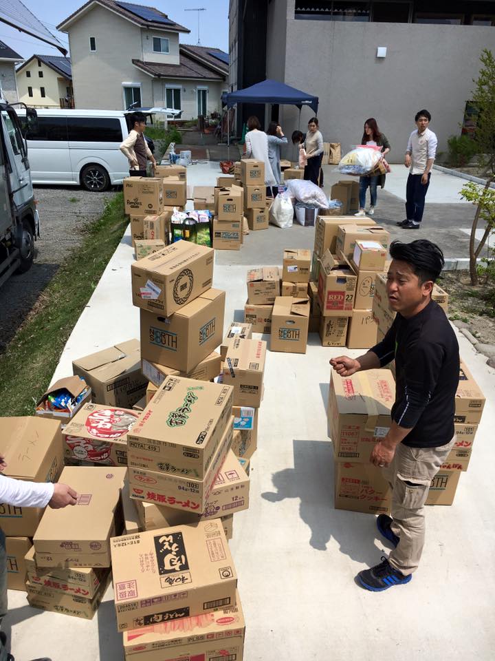 予想もしない大地震が発生し、いつも好意にしている方々からのヘルプ要請に、熊本の為に何か出来ないか!!必死で考え、物資を届けに行きました。
