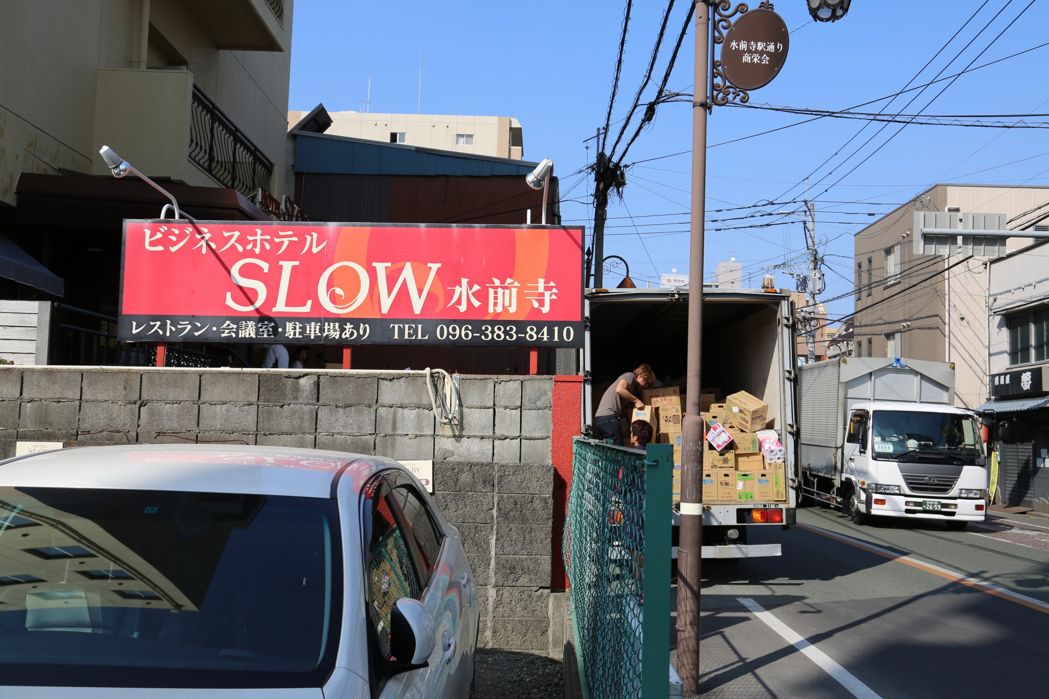 4トンの物資をホテルSLOW水前寺さんへおろしました。