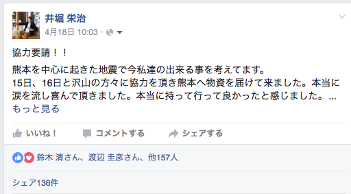 Facebookにて支援をお願いする投稿をさせて頂きました。