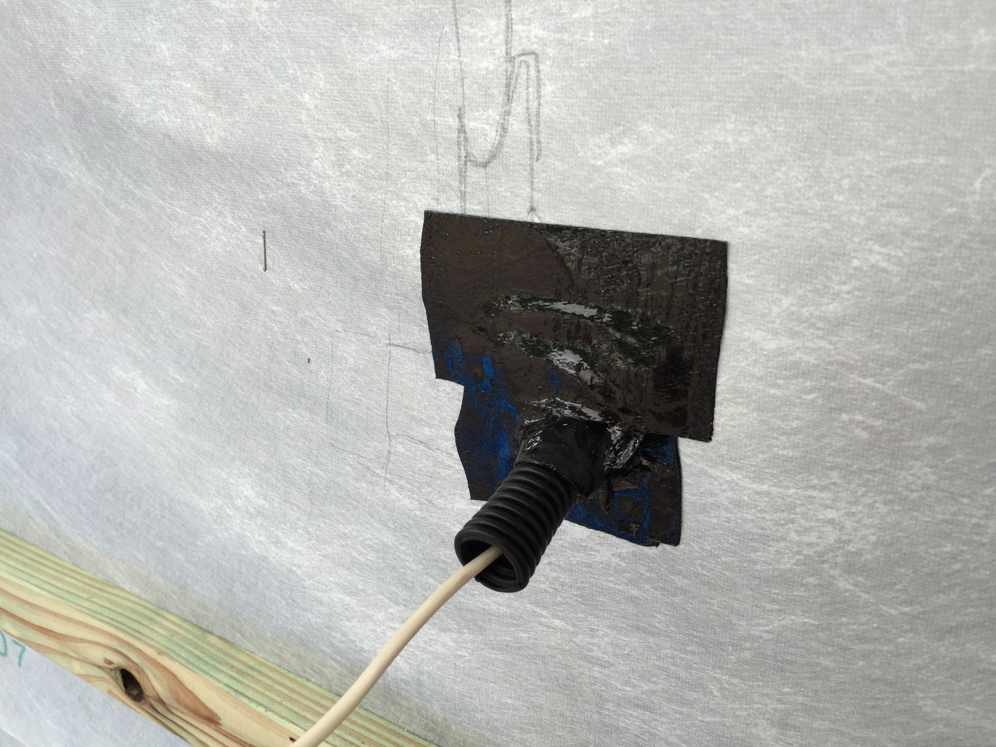 外装下地(防水紙、防水テープなど)の施工状況を確認する検査です。
