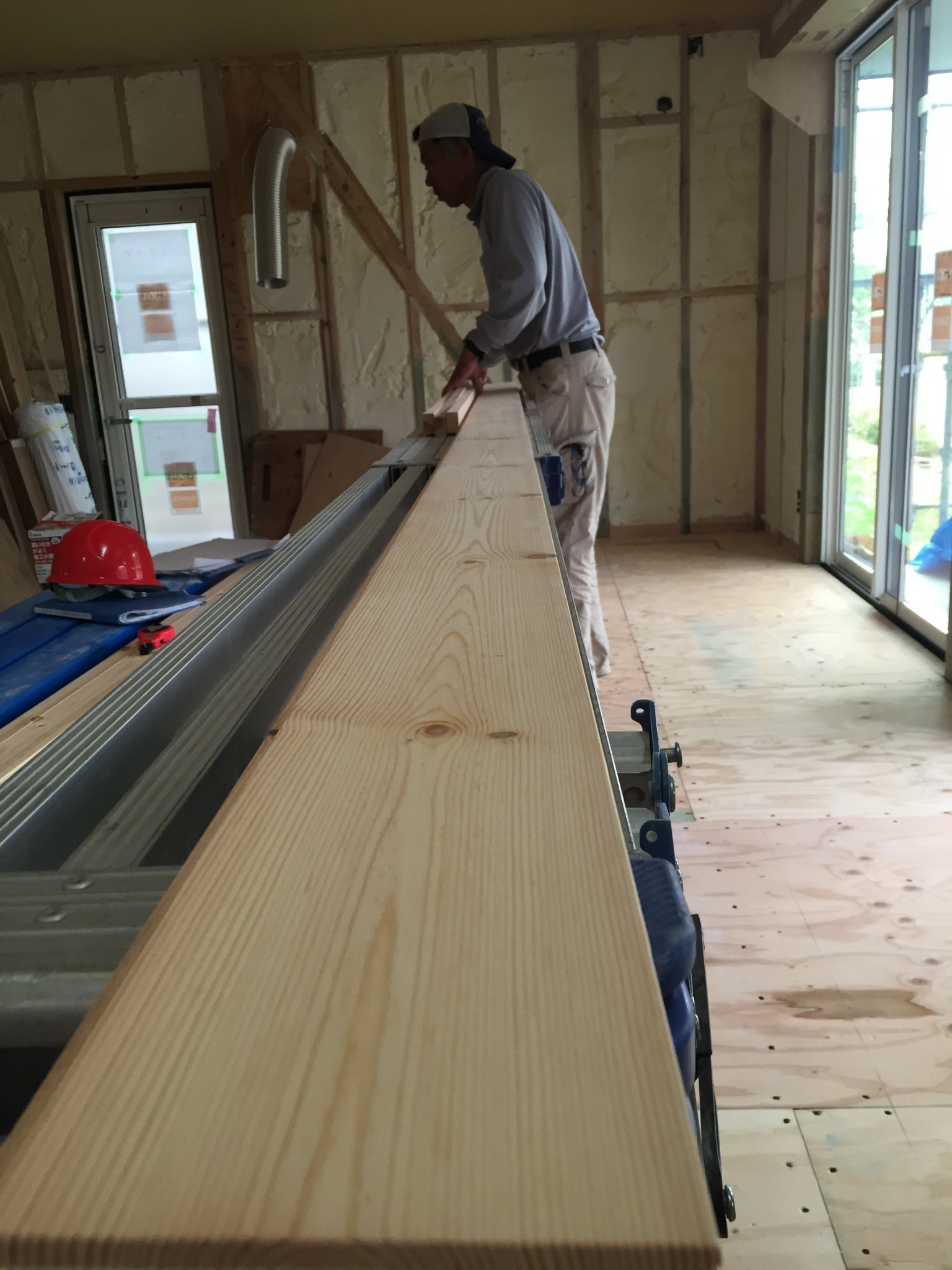 内部は大工さんが今日から床張り工事に入りました!!