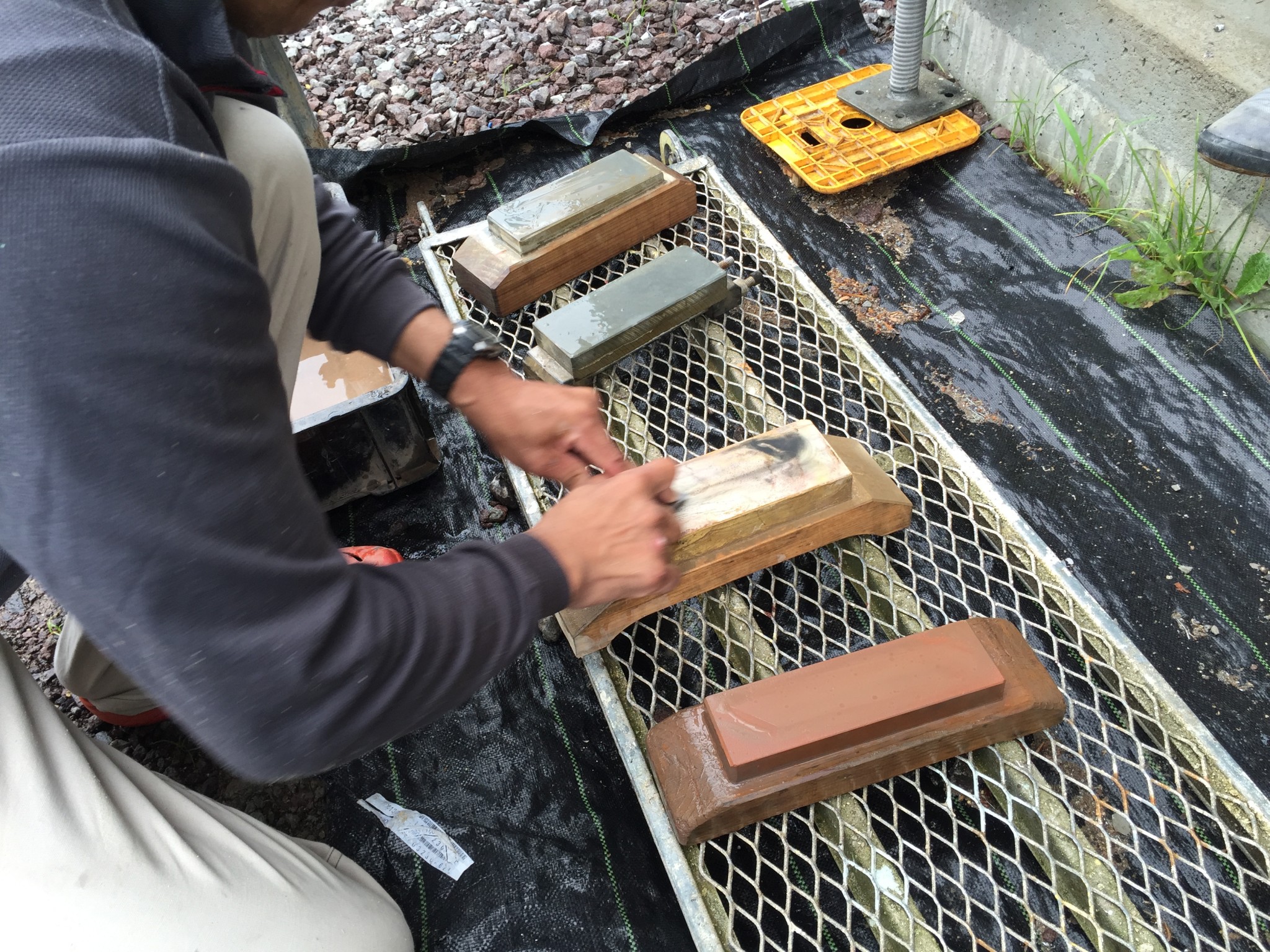 砥石で丁寧に研いでいたのですが、よく見ると何種類も砥石が・・・。