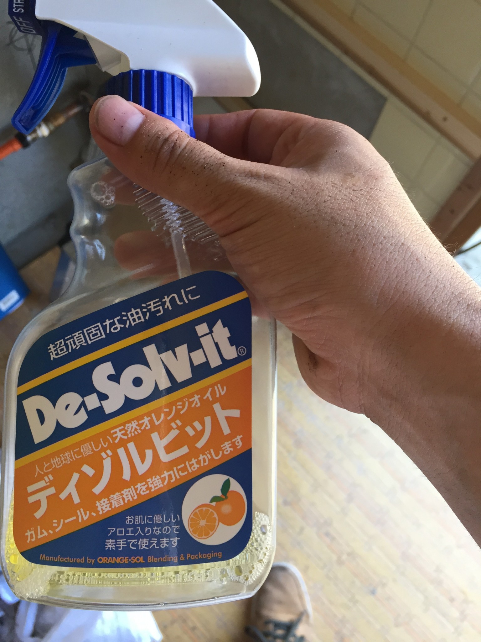 こいつを落とすには、これが良く効きます。オレンジの成分が、油汚れを分解してきれいになります。