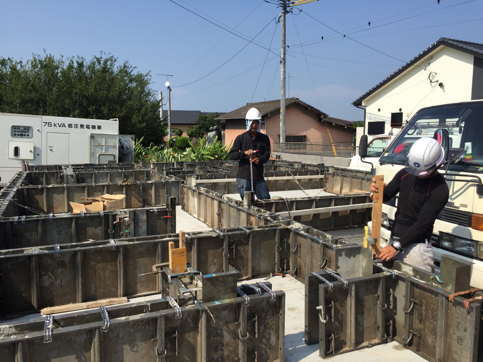 基礎工事の真っ最中です。本日、立ち上がりのコンクリート打設中