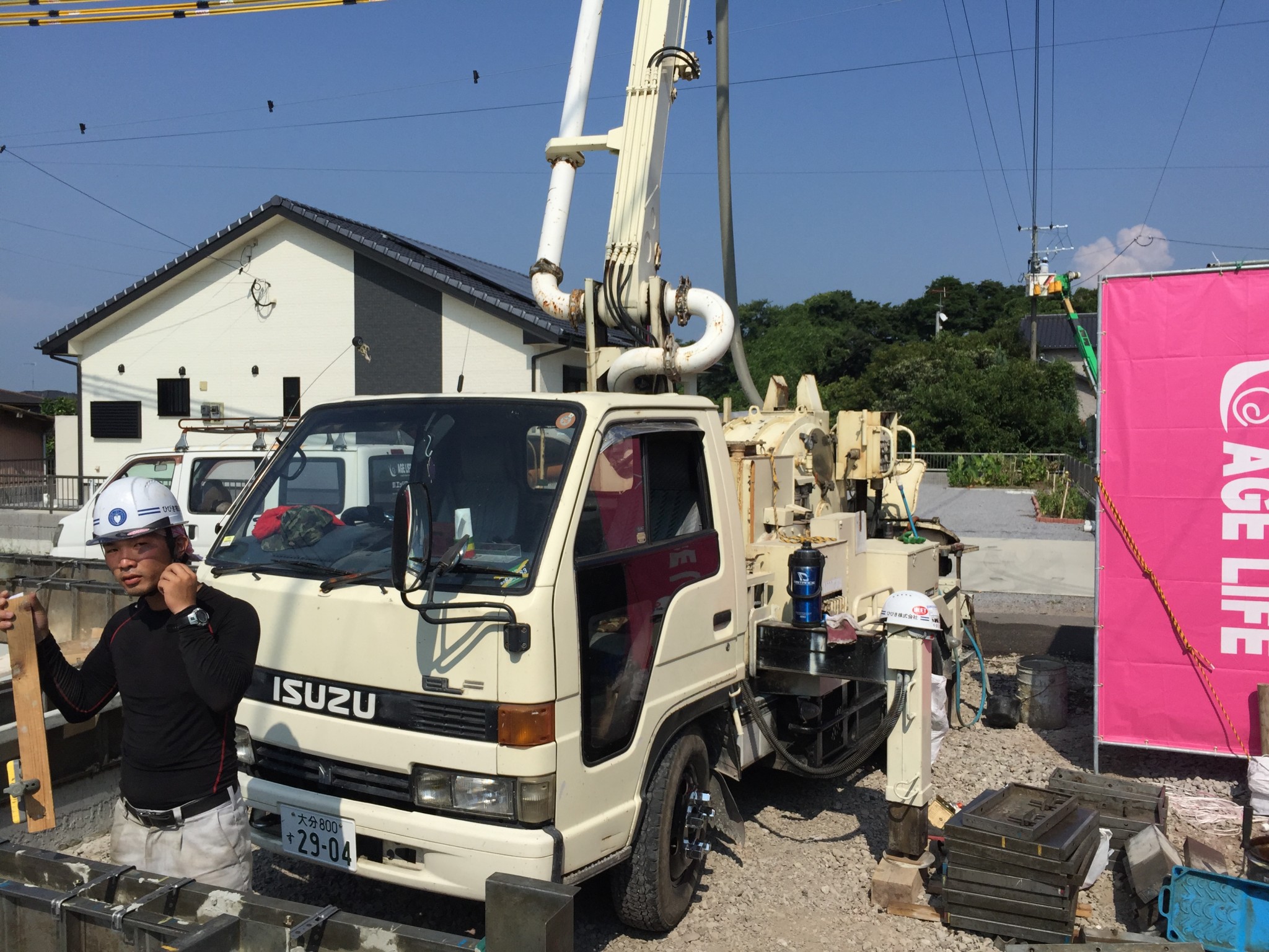 今回、驚いたのはコンクリートポンプ車も基礎屋さん持ち(所有)とは