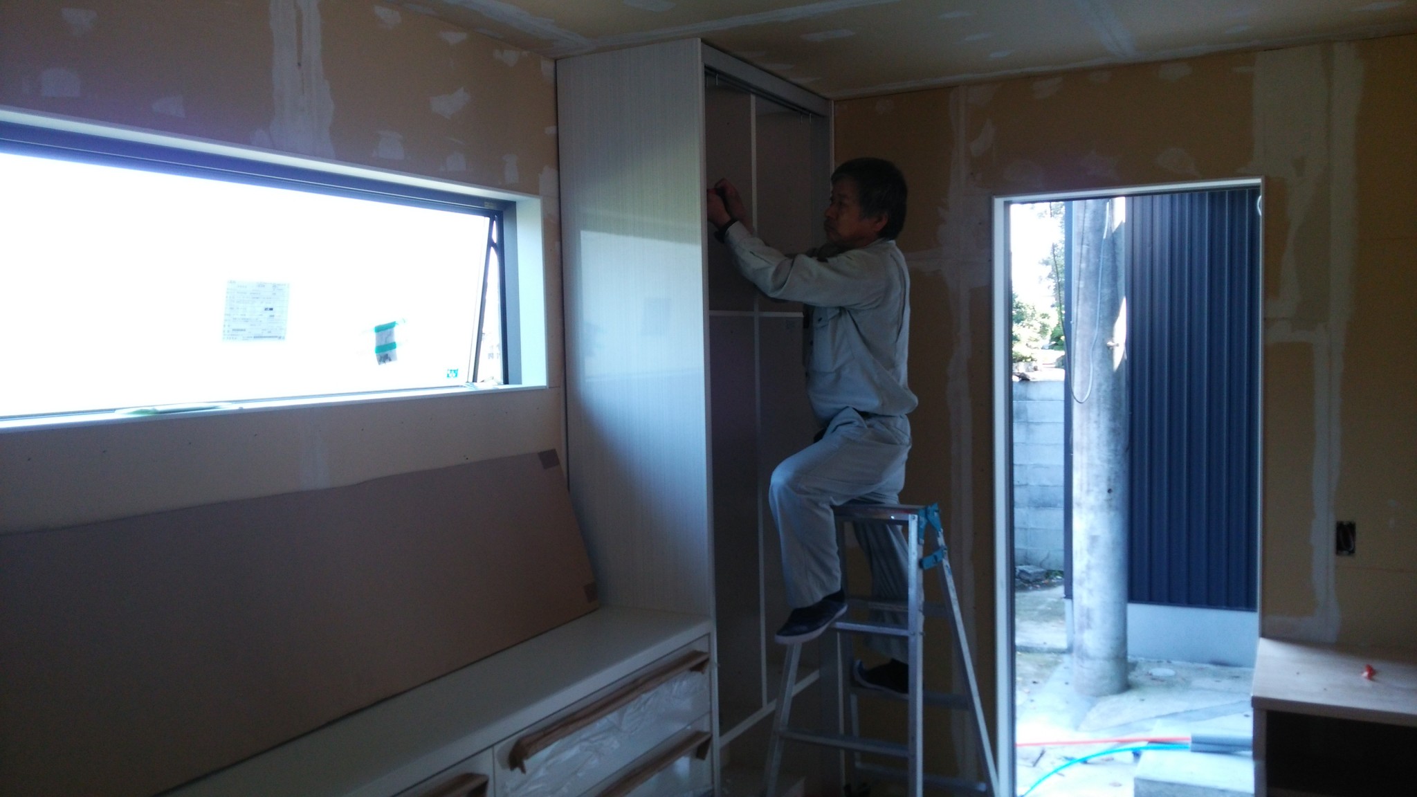 そしてキッチンうしろのカップボードの取付