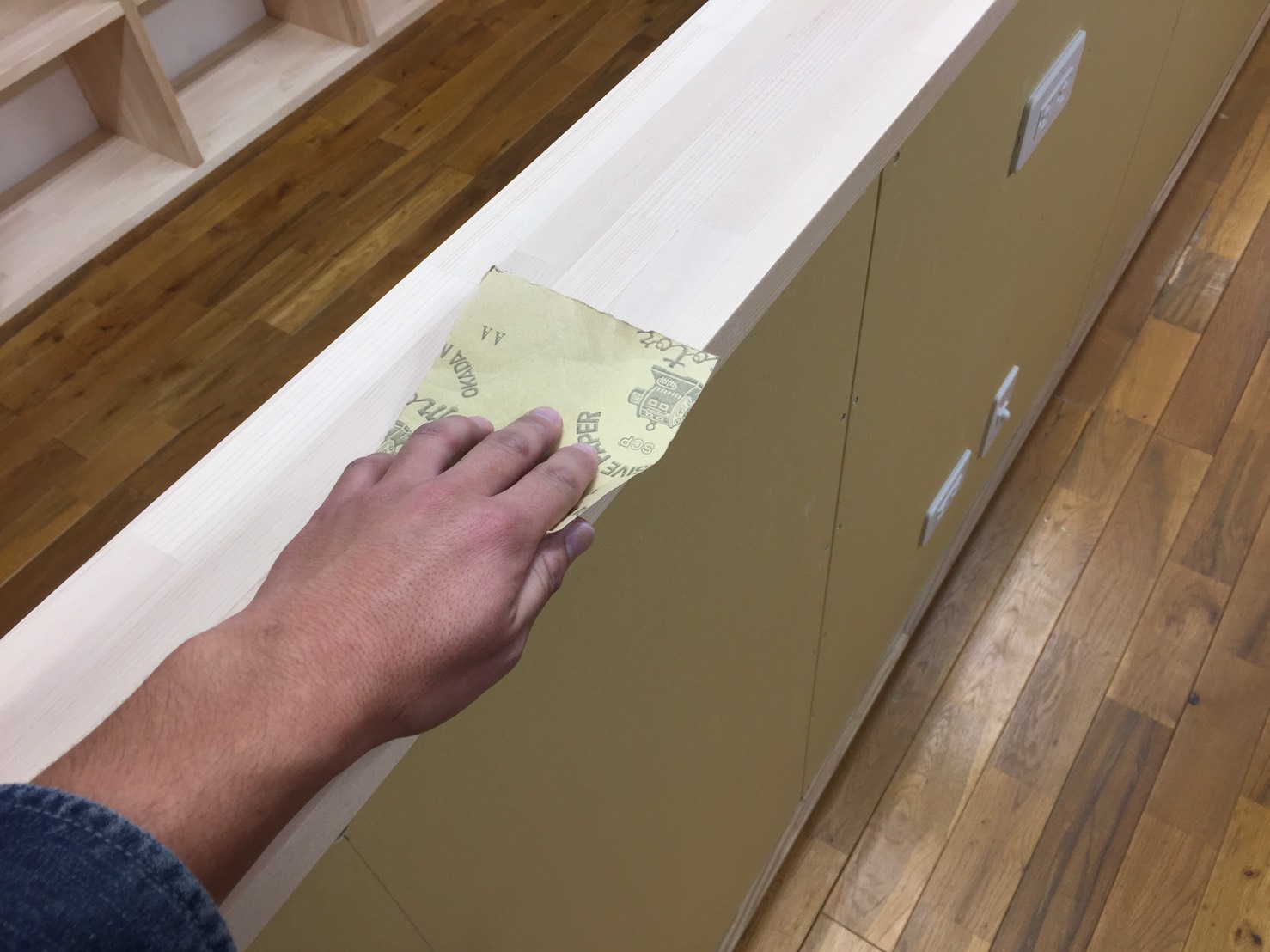 まずは、320番の紙ペーパーで表面のガサツキを取り除きます。