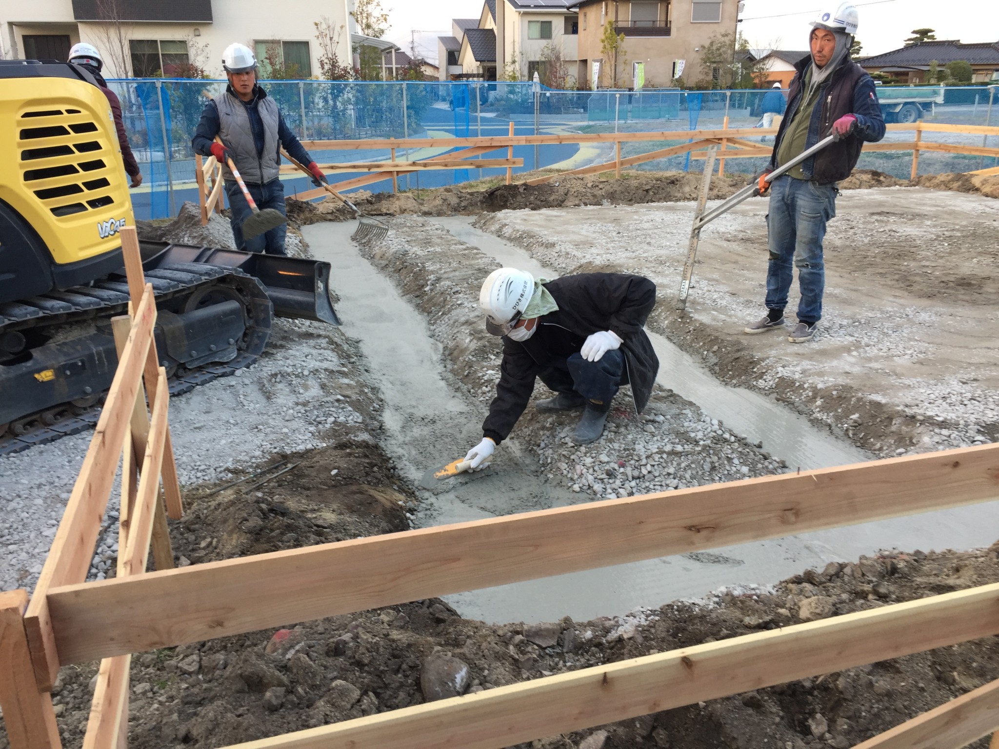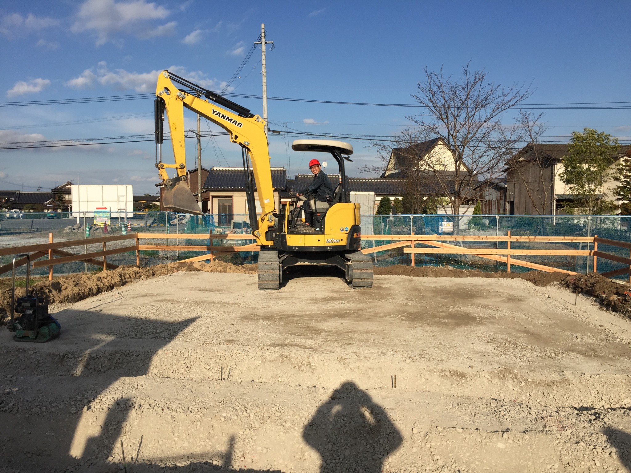 このあと、本職の方がユンボを使って基礎工事を行いました(´∀`)