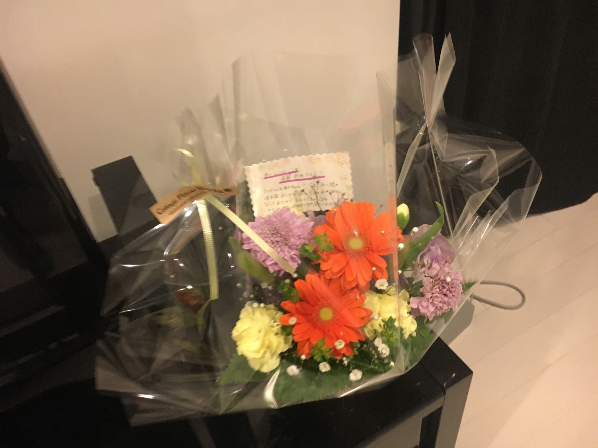 昨日はその先輩家族からお祝いのお花を頂きました