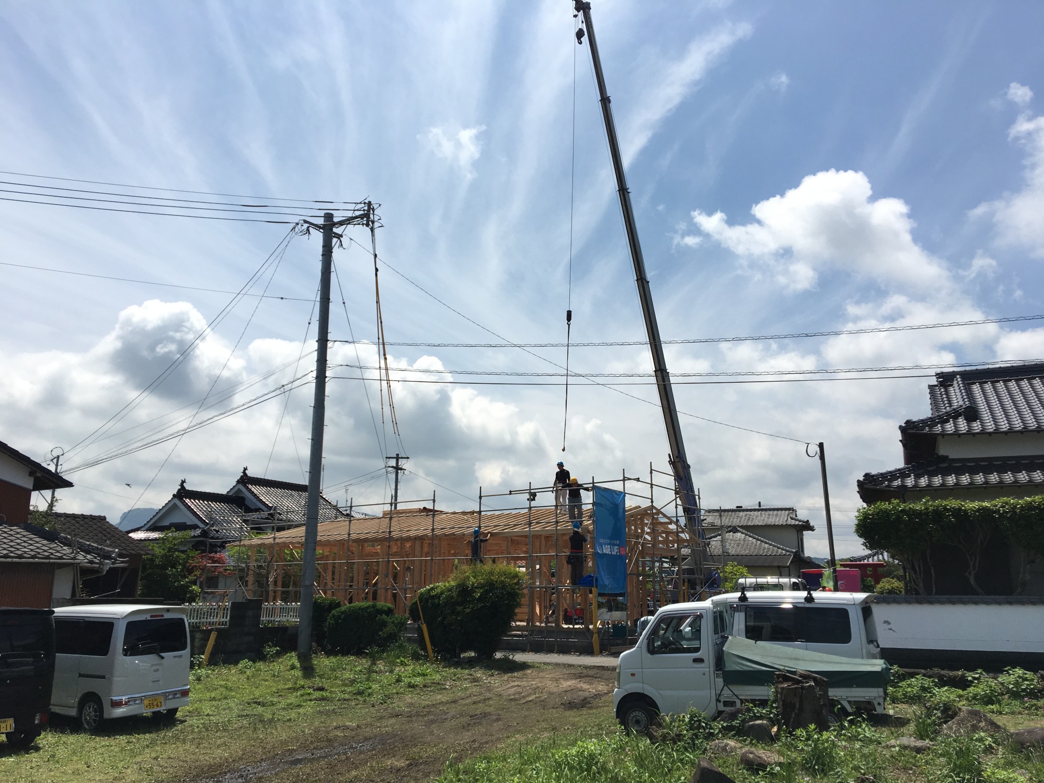 2017.05.18 現場・現場・現場 スタッフ日記 みなさんこんばんは ゴールデンウィークも明け夏本番に近づいていますね!!! もう日焼けで真っ黒になりかけの安部です ただいまおかげさまで着工ラッシュ!!! まずはこの前行橋市で外壁検査を行ったS様邸 この前吉富町で足場が取れたO様邸 ゴールデンウィーク中に棟上げしたN様邸 M様邸 A様邸 A様クレーンに乗る もう1棟 A様 職人さんの頑張りで現在どんどん工事が進んでおります。 引き続きアップしていきますので 楽しみにしててくださいね(^^)