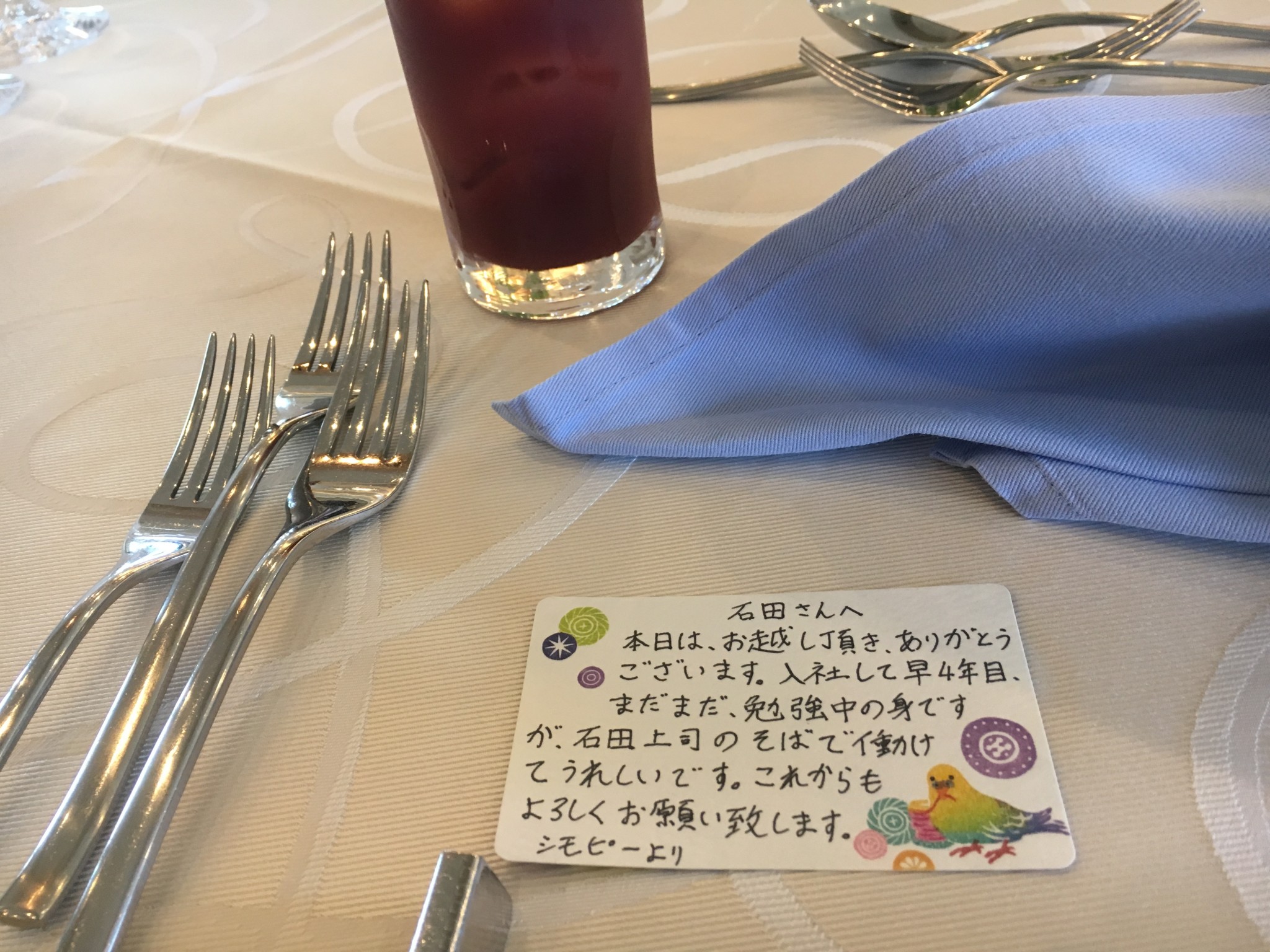 テーブルに座るとメッセージが書かれておりました。