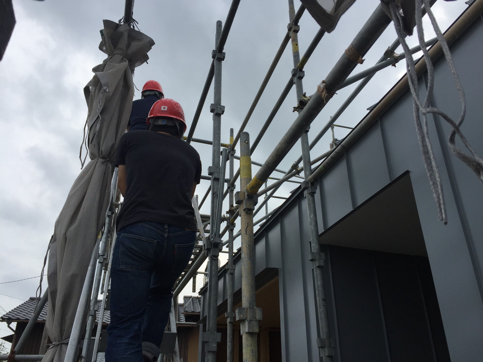 社内スタッフのチェックと、外部の検査機関の方による検査が完了したら足場解体となります☆