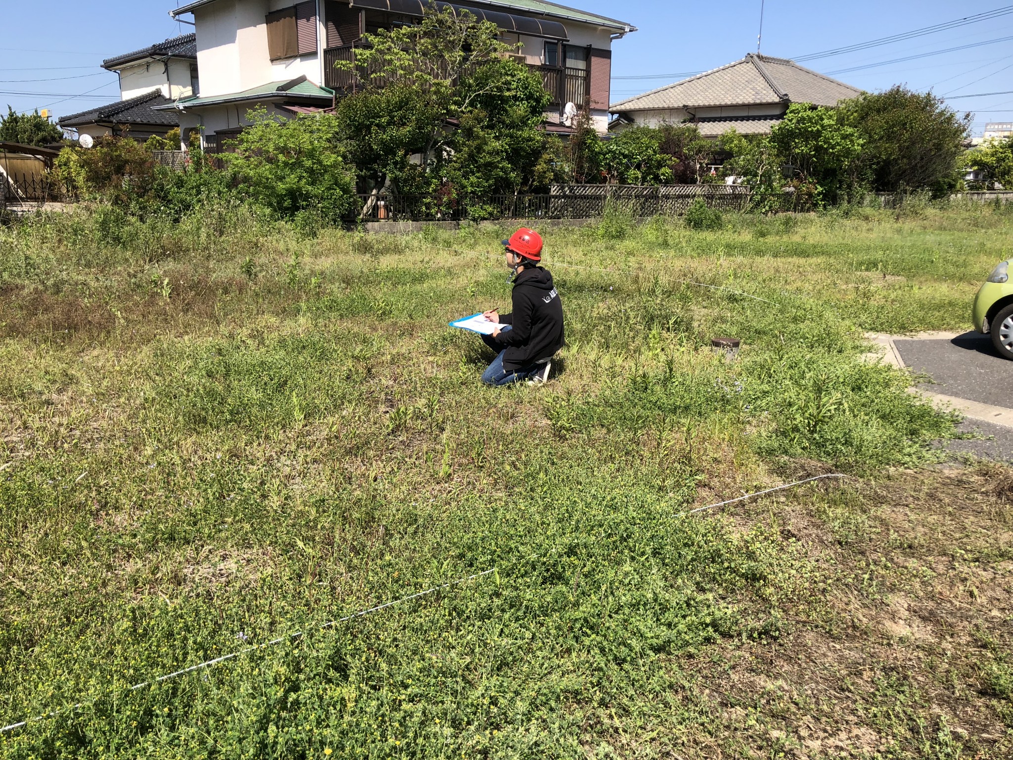 さて、本日は我らがシモツマ先生のお手伝いとして、現地確認&地縄張り作業をさせていただきました!