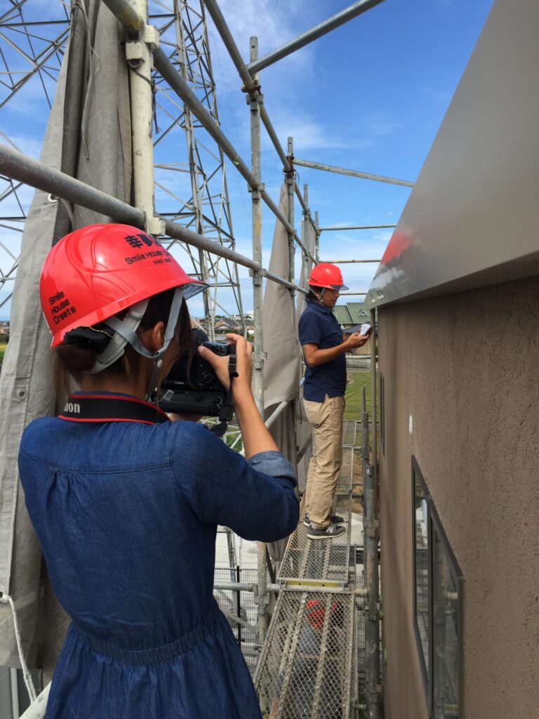 安部さんが外壁チェックしている中、撮影担当のながちゃんがしっかりと写真どりをしております。