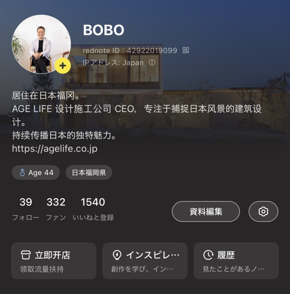 小红书のアカウント名もBOBOに変更しています。