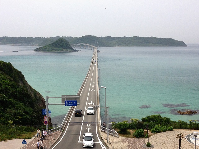 角島大橋を渡るとき、隣には綺麗なコバルトブルーの海。