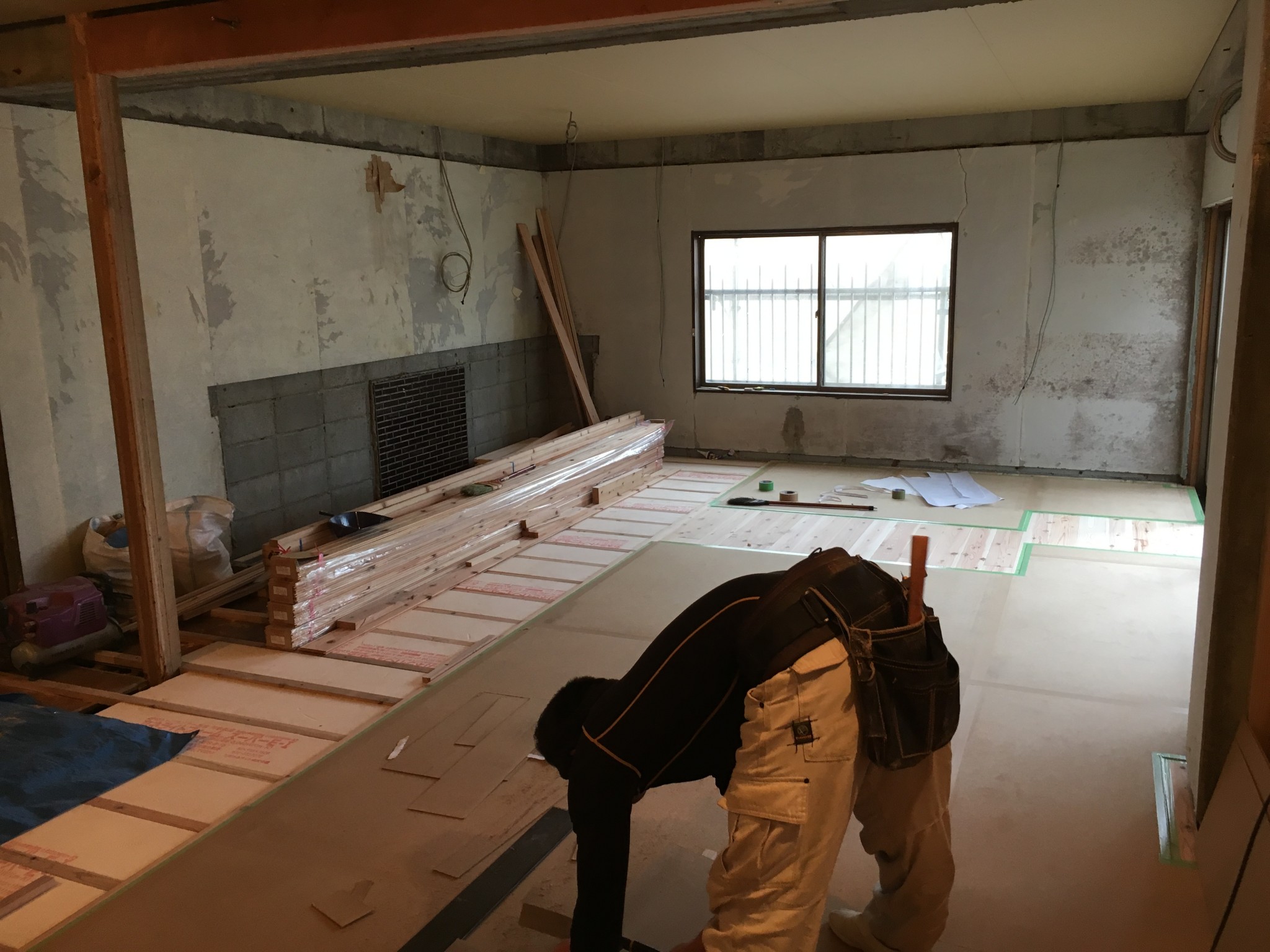 そしてお弟子さんの方は床断熱入れから床の板貼りを行っております!!