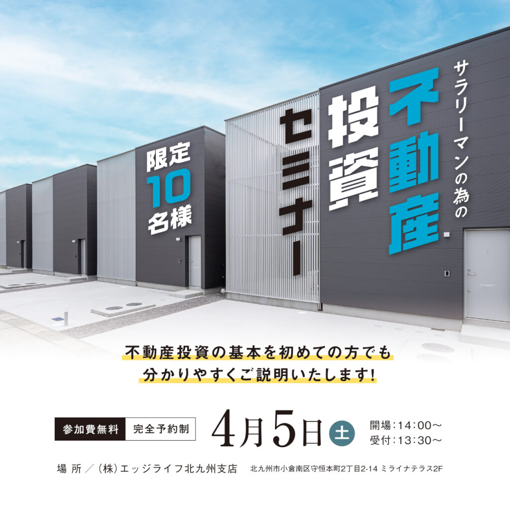 サラリーマンの為の不動産投資セミナー 4/5(sat) ”先着10名様” 限定開催 会社員として働ぎながら不動産投資をはじめ、開始5年で規模拡大中。 不動産投資のリスクを減らす方法は「正しい知識を […]