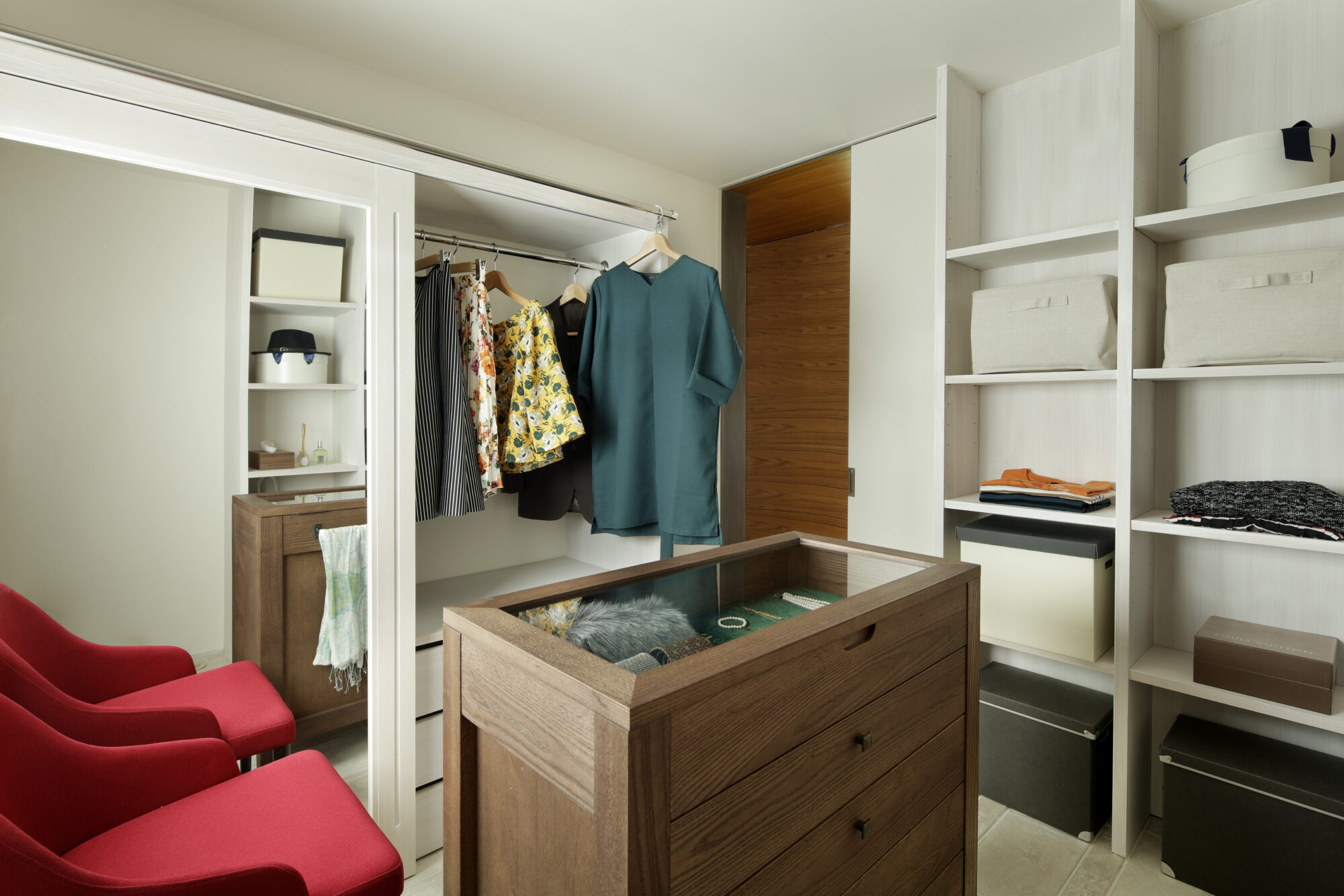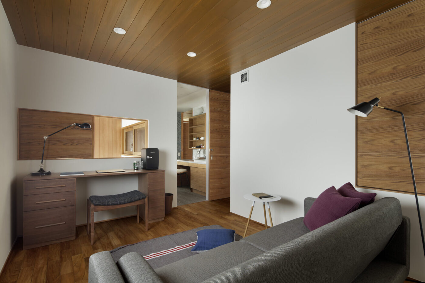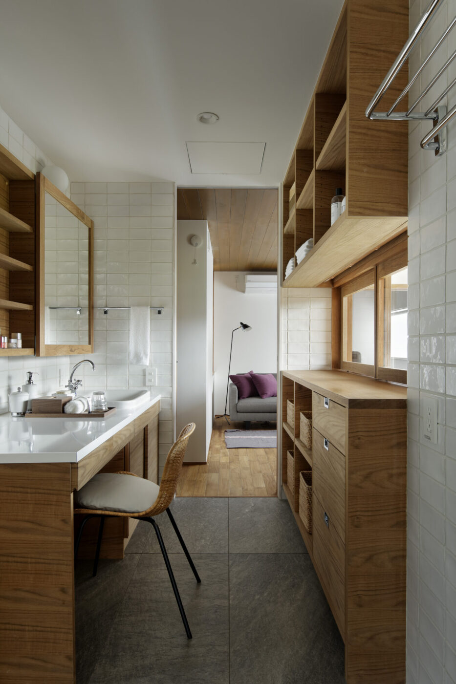洗面所と言う裏方の場所から、ホテルの様な非日常な空間を作りました。