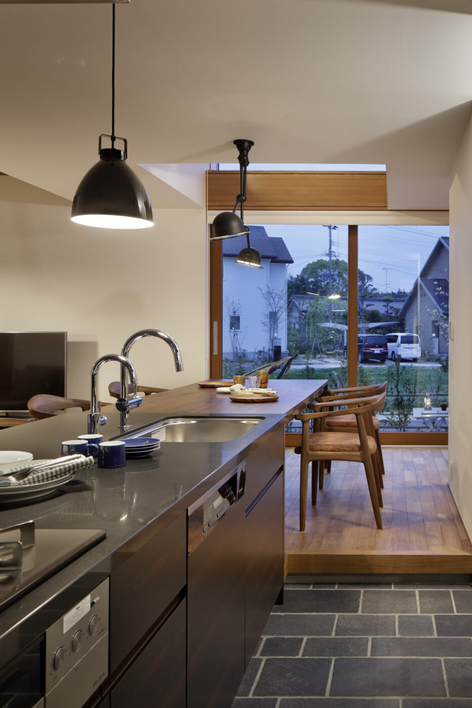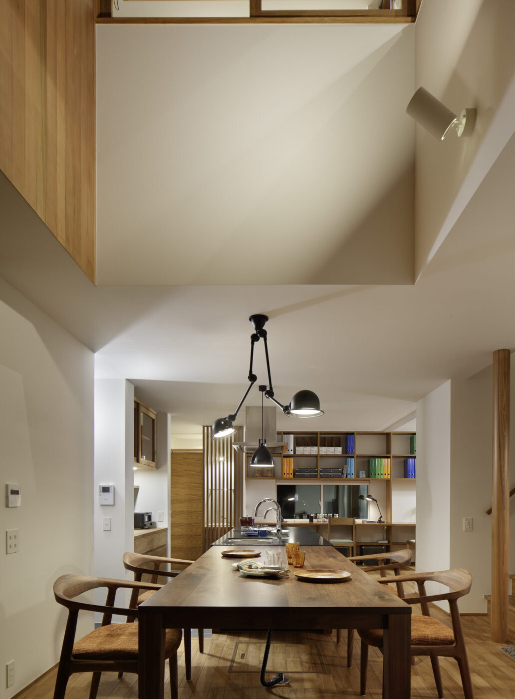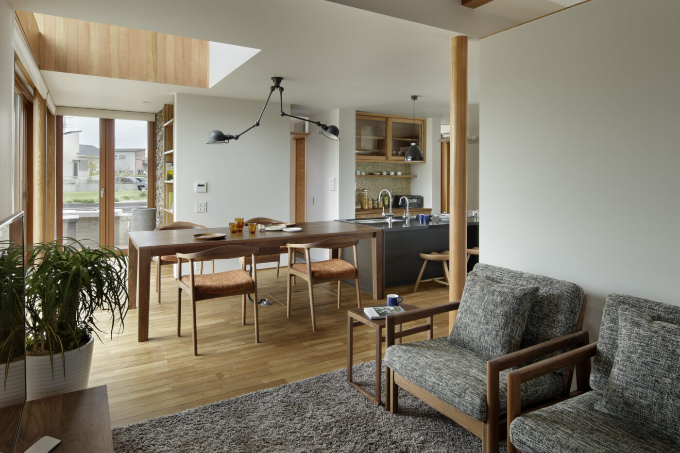 キッチンとダイニングをつなげ、リビングではなく、ダイニングが家の中心にある家。