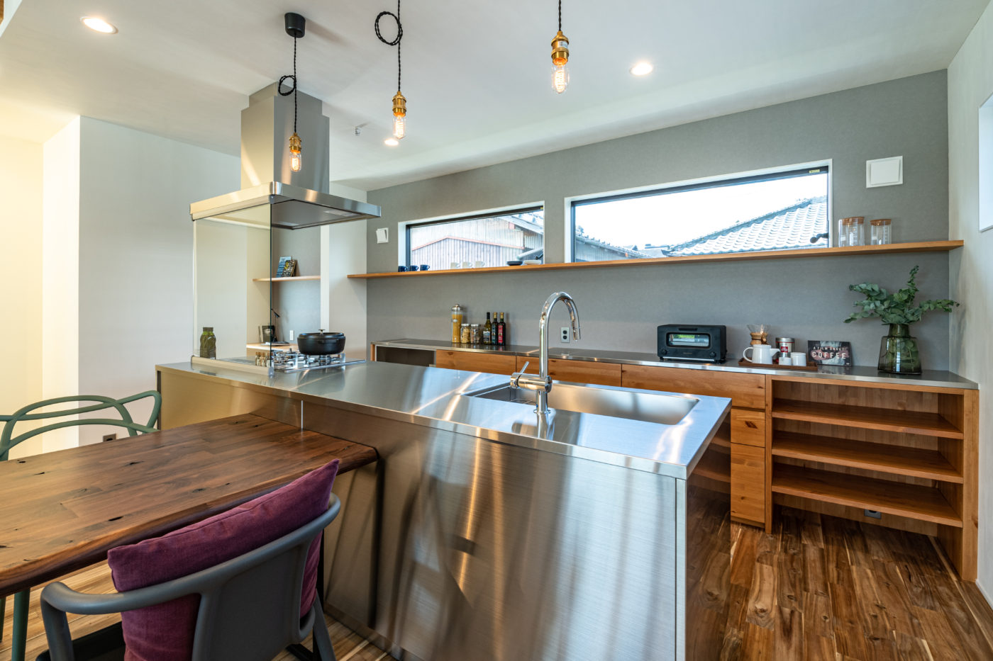 メインスペースにはステンレスのオーダーメイドキッチン。