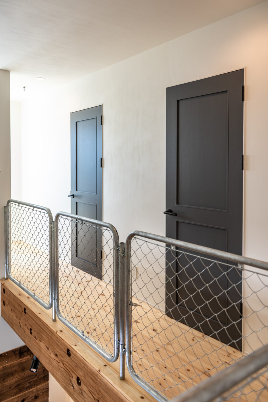 吹き抜けには、2階のアメリカンフェンスが望めます。