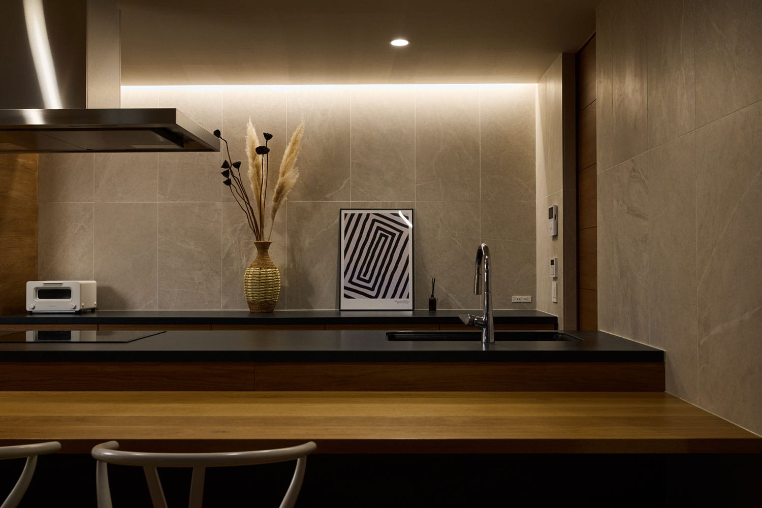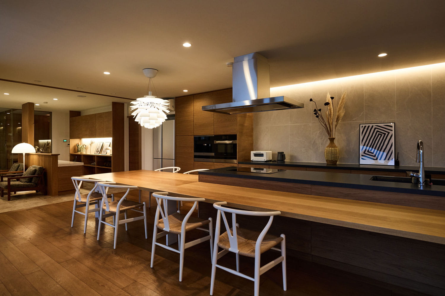 開放的なアイランドキッチンとダイニングテーブルでは、気の合う仲間と遅くまで語り合っていただけます。