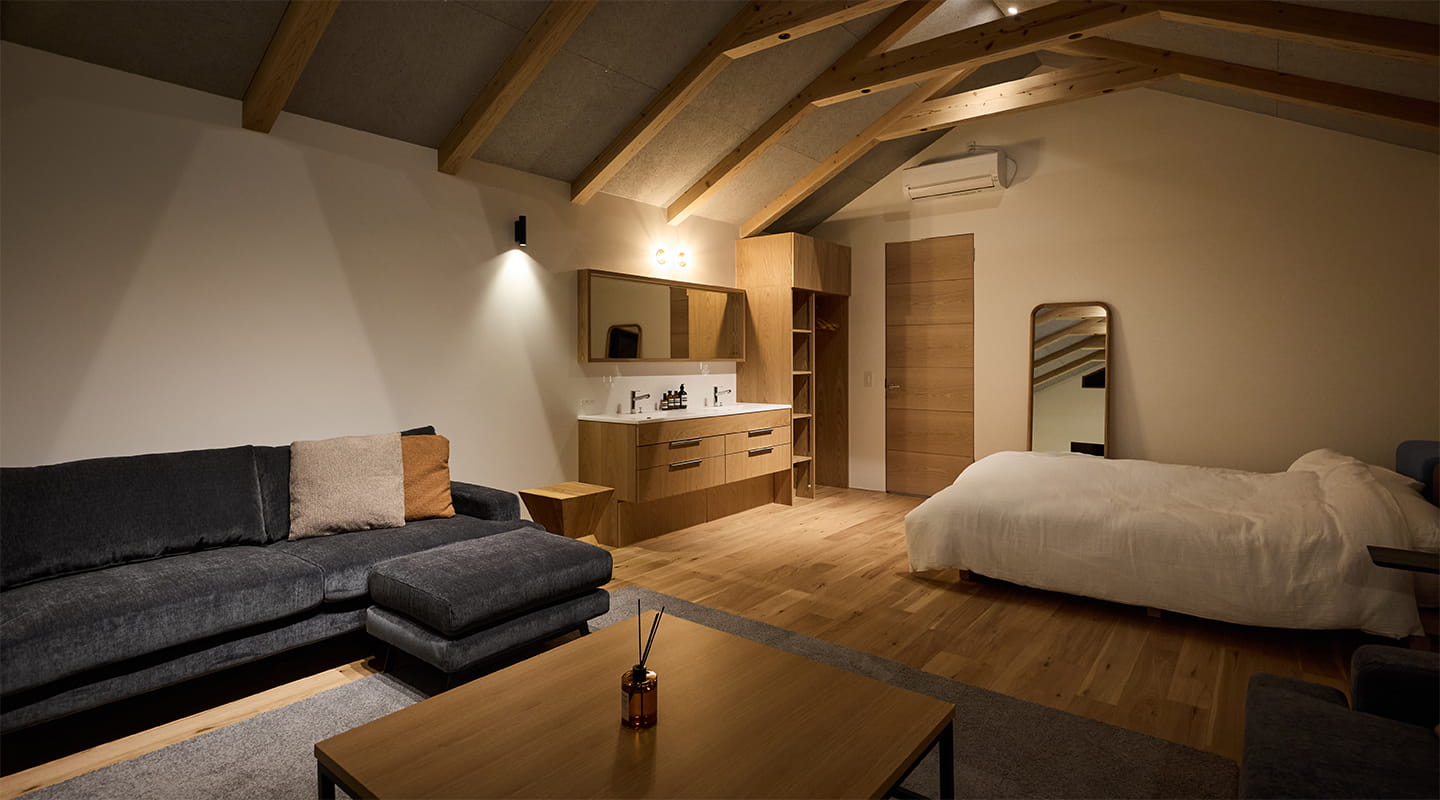 その賑わいから離れ徒歩5分、利便性と自然の静けさを兼ね備えた好立地に、心安らぐ一棟貸しの宿が誕生しました。